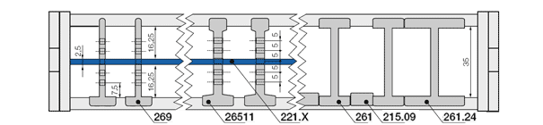 Están montados cada 20 eslabones partiendo del terminal fijo de la cadena portacables. Eslabón montado.