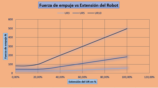 A partir de la distribución de cargas del robot UR en función de la extensión de su brazo y usando los sistemas expertos para el cálculo de sistemas lineales, hemos podido realizar estas gráficas que servirán de guía para la configuración del 7º eje para robots colaborativos.