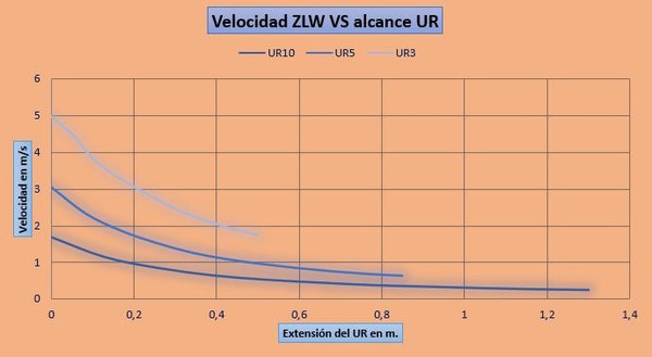 Velocidad admisible del sistema mecánico en función de la extensión del robot.