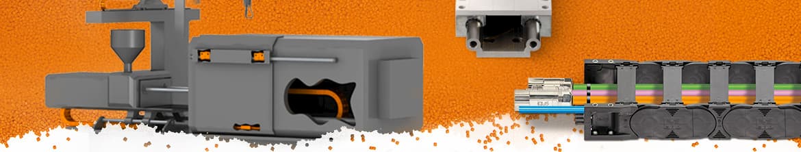 Cuando en el suministro de energía a máquinas para el procesamiento de plástico, las cargas altas, la precisión y las temperaturas altas son importantes. Las cadenas portacables de plástico en líneas de láminas sopladas, máquinas de moldeado por inyección o extrusoras protegen los cables y mangueras. Incluso con rellenos pesados, las cadenas portacables plásticos muestran sus ventajas:
