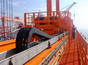 540° rotary module inside the bridge platform to allow the pivoting movement. The e-chain® series E4.1 for energy guidance (including fire extinguishing water) of the extendible telescopic unit of the bridge.