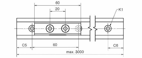 Nº de art. Longitudes de raíl máx. a C4 A3 C5=C6 h h1 K1* ly lz Peso del raíl Precio/m