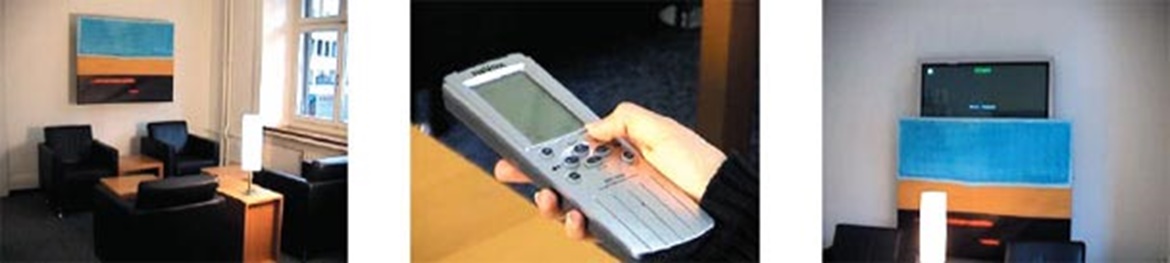El cuadro está colgado delante del televisor. Cuando este se quiere utilizar, el cuadro se baja despejando la pantalla.