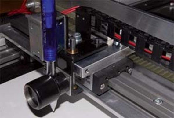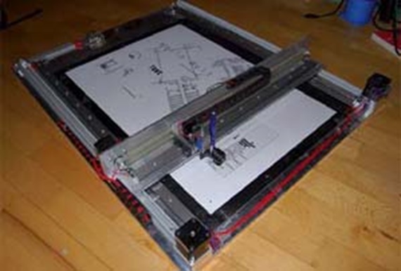 This plotter is an economical solution for printing up to DIN A2 format. drylin® T linear guides are used on both axes. The plotter’s precision is ±0.1 millimetres. Different writing instruments, no matter whether pencil or ballpoint pen, can be clamped in place.