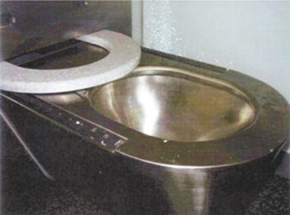 The toilet seat is automatically cleaned after every use in these public WCs. For this purpose, the seat is pulled into a technical room where it is cleaned and disinfected. The seat is dried whilst moving back out. The linear guide system used should be stable and resistant to corrosion, dirt and cleaning chemicals. Two drylin® T linear guide systems each with two carriages were screwed together with the milled Corran toilet seat. The guide rods are screwed on the stainless steel seat and in the cleaning trough. The toilet seat is moved by a step motor.