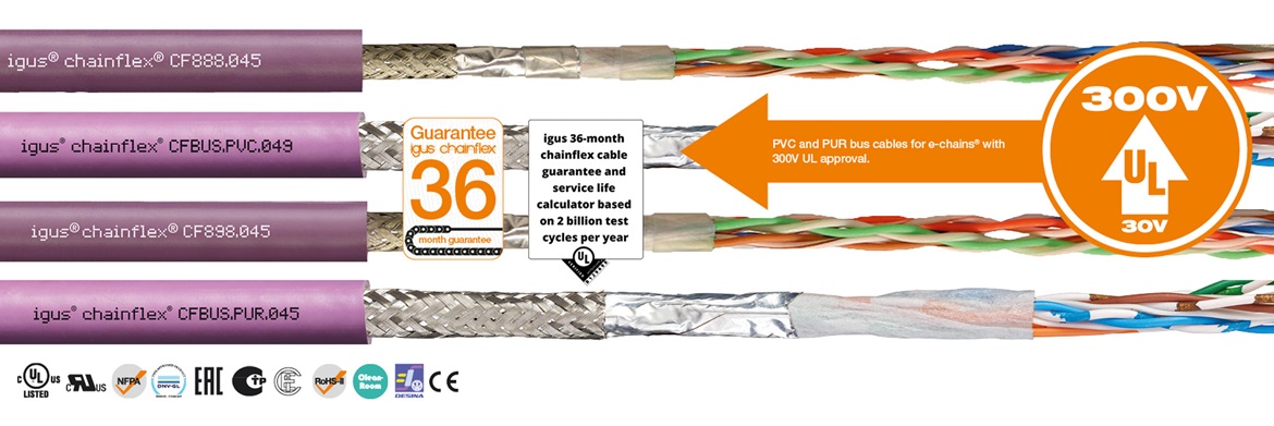Cables de bus chainflex® disponibles de inmediato en todos los materiales de revestimiento y con certificado 300V UL