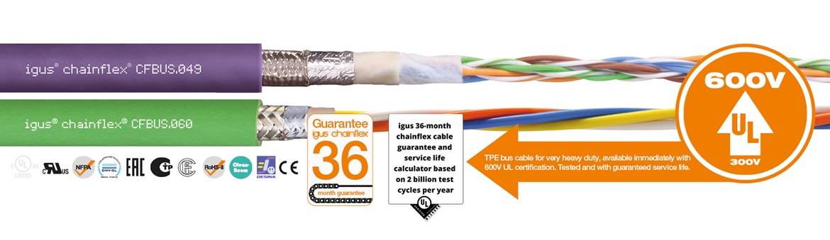 En 2020, como una continuación consistente de esta reivindicación tecnológica, igus se ha convertido en la primera empresa europea en obtener la verificación de su promesa de marca para los cables chainflex por parte de una entidad externa. En un complejo proceso de certificación, el instituto estadounidense Underwriters Laboratories confirmó la exactitud de la promesa de igus®: «garantía chainflex de 36 meses y cálculo de la vida útil basado en 2 mil millones de ciclos de prueba al año». Esto convierte a igus en la primera empresa europea en obtener la confirmación sobre la veracidad de sus promesas por una institución de pruebas reconocida internacionalmente.