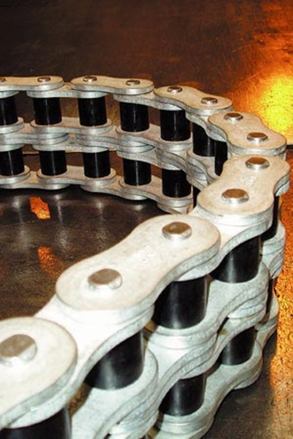 En definitiva, las cadenas de transporte son una yuxtaposición de Cojinetes juntados por medio de placas (metálicas). Para funcionar y protegerse de la corrosión, las cadenas estándar requieren un mantenimiento regular. El engrasado de las grandes cadenas utilizadas en el exterior es tan costoso que muchas veces es descuidado, lo cual conduce a un desgaste prematuro o a la avería de la cadena.