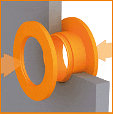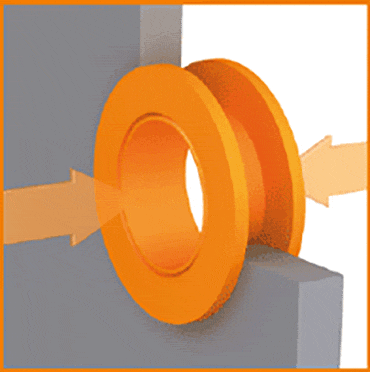 La arandela de fricción se enclipa en el casquillo con brida con rebordes.