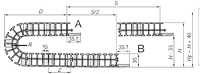 Serie T3.29 - cadena portacables con travesaño en cada segundo eslabón